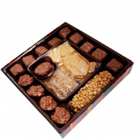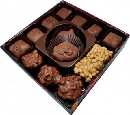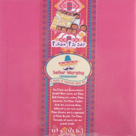 You’ll love this Southwestern parade! Here comes the Piñon roll leading the creamy piñon caramels. The piñon toffee chips are crunching along, followed by the bite-sized piñon clusters and a wagonload of piñon brittle (brittle in the 1# and 2# boxes only). The piñon tortugas, of course, are the grand finale.